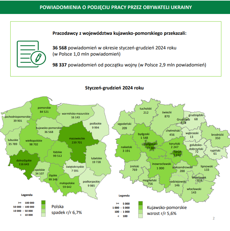 Na koniec grudnia 2024 roku liczba pracujących obywateli Ukrainy kształtowała się następująco: