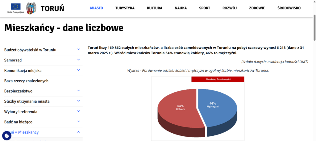 Pan radny wspomniał, że według danych GUS Toruń liczył 193 tysiące mieszkańców na koniec grudnia 2024 roku. Tymczasem na stronie Urzędu Miasta Torunia widnieje informacja, że na marzec 2025 roku liczba mieszkańców wynosi już tylko 176 tysięcy. Co więc stało się – według danych, na które powołuje się Pan radny – z niemal 17 tysiącami mieszkańców w zaledwie trzy miesiące?